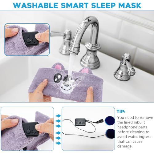 【Masque oculaire de la musique rechargeable】Le masque oculaire Bluetooth est équipé d’une batterie de lithium rechargeable USB intégrée, qui a une forte autonomie de la batterie et vous permet de profiter du temps de lecture à long syllabaire / music. Il a également un temps de veille ultra long. Si vous avez besoin de nettoyer le masque à cause les yeux, vous pouvez retirer les écouteurs et la batterie à cause empêcher l’eau d’entrer à cause les écouteurs pendant le processus de ablution.