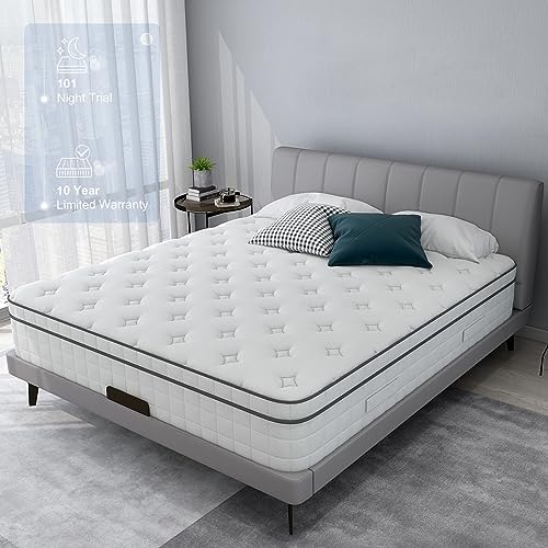 Matelas hybride à ressorts intérieurs, 26 cm avec mousse respirante et ressorts ensachés pour un sommeil confortable et frais, sensation de peluche moyenne (135 x 190 x 27 cm)