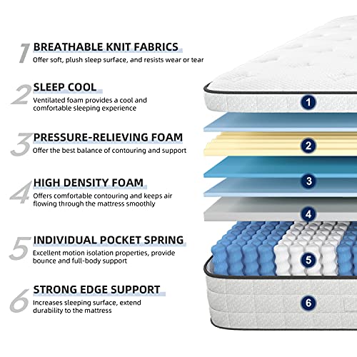 Specification: Matelas hybride à ressorts intérieurs, 26 cm avec mousse respirante et ressorts ensachés pour un sommeil confortable et frais, sensation de peluche moyenne (135 x 190 x 27 cm)