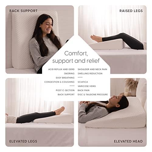 MULTI-USAGE Cet oreiller à la forme ergonomique améliore votre position pendant le sommeil, ce qui peut prévenir les troubles orthopédiques de la colonne vertébrale, du cou et des épaules. Placez le coin à la verticale lorsque vous regardez la télévision ou lisez dans le lit, ou mettez-le au pied du lit pour surélever vos jambes et vos pieds.