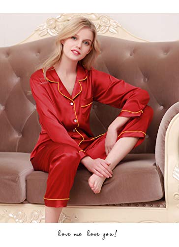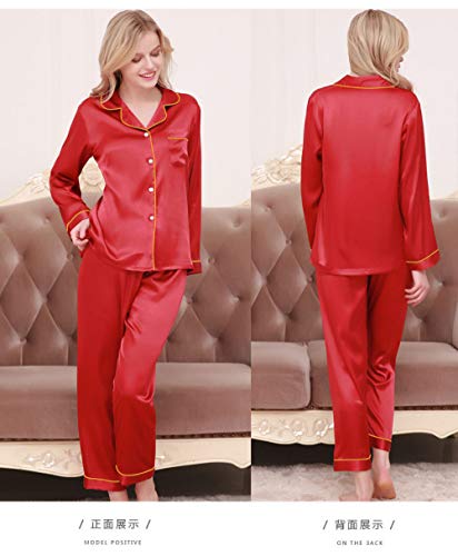 Specification: MIYAA Pyjama Satin Femme,Glace Soie Lâche Femmes Pyjamas Rayonne Couleur Pure Élégant Pyjama À Manches Longues Ensemble 2 Pièces Bouton vers Le Bas Vêtements De Nuit Vêtements De Nuit