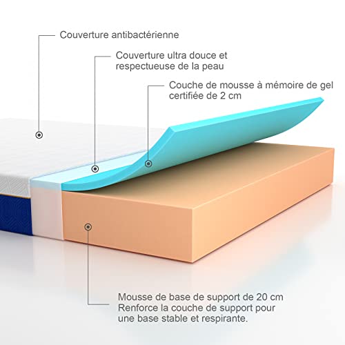 【Dimension】160x200x22 cm .Ce matelas en mousse à mémoire de forme sera parfaitement assorti à votre lit. Notre objectif est de vous offrir un matelas de haute qualité à petit prix.