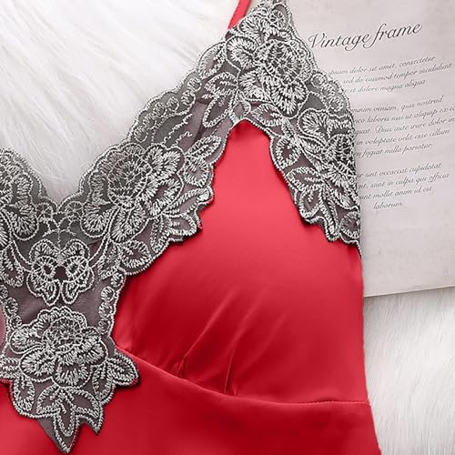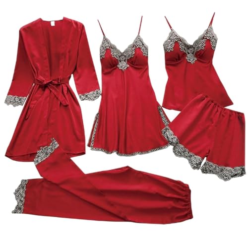 NIUREDLTD Pyjama Silky Sleepwear Set Nightwear Pyjama Dentelle Satin 5Pcs Set Femmes Sexy avec Robe Pantalon Sexy Ouverte