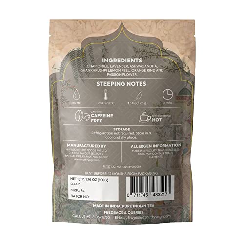 Specification: Nutty Yogi 100% Natural Chamomile Green Tea for Good Sleep & Relaxation Herbal Tea Blend of Chamomile, Lavender, Ashwagandha, Lemon Balm, Orange Rind, Shankhpushpi – 50 gm