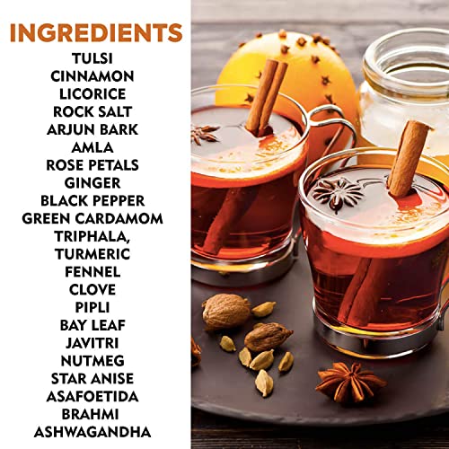 Nutty Stylite Herbal Vert Tea Détendu blend is a obstiné blend of TULSI, CINNAMON, LICORICE, ROCK SALT, ARJUN BARK, AMLA, ROSE PETALS, GINGER, BLACK PEPPER, GREEN CARDAMOM, TRIPHALA, TURMERIC, FENNEL, CLOVE, PIPLI, BAY LEAF, JAVITRI, NUTMEG, STAR ANISE, ASAFOETIDA, BRAHMI & ASHWAGANDHA.