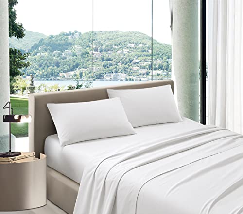 Parure de lit maxi câlins en coton – Parure de lit double fabriquée en Italie – dessous de 180 x 200 cm H 30 cm (blanc, King Size 180 x 200)