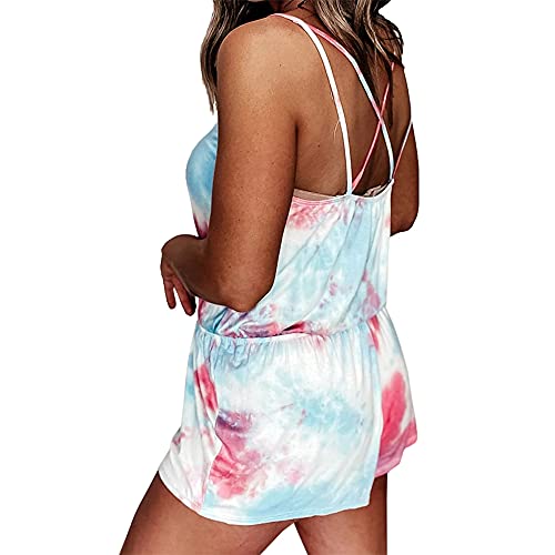 Specification: PRJN Ensembles d’été pour Femmes Tie-Dye Sling Sleepweare T-Shirt à Manches Courtes Ensemble de Pyjama Shorts Vêtements 2 pièces Survêtements pour vêtements de détente T-Shirt Pantalons Homewear