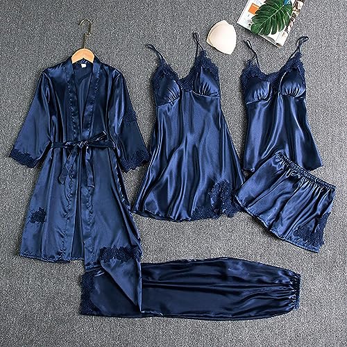 Specification: Pyjama en satin 5 pièces Robe de nuit Femme Sexy Col V Satin Vêtements de Nuit Sexy Chemise de Nuit Chemise de Nuit Soie Nuisette Robe Lingerie Sexy Vêtements de Nuit Femme Peignoir Babydoll
