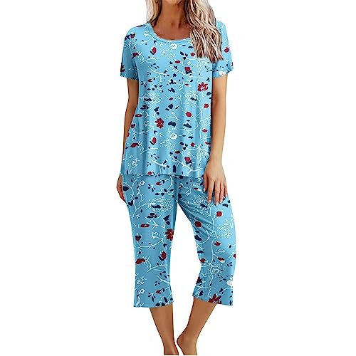 Specification: Pyjamas Femmes Ensemble Pyjama Femme Ete Pyjama 2 Pièces Haut Manche Courte Et Pantalon 3/4 Pas Cher Imprimé/Couleur Unie Sleepwear Grande Taille pour Femme Pyjama