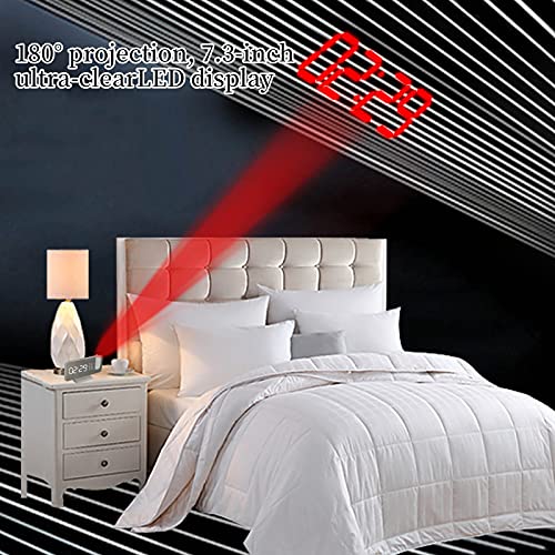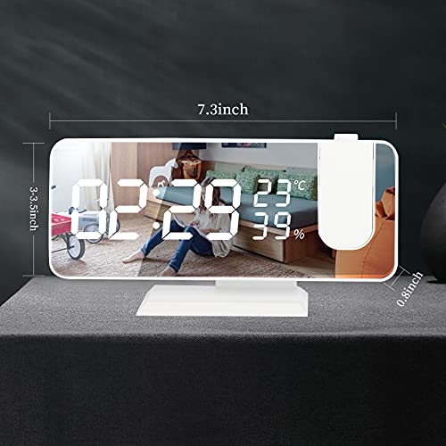 Specification: Reveil Projecteur Plafond, Radio Reveil Horloge Numérique avec Température et de l’humidité LED Écran Miroir , Chargeur USB Port 180° Projection Double Alarme Snooze Loud pour Chambre, Bureau (Blanc)