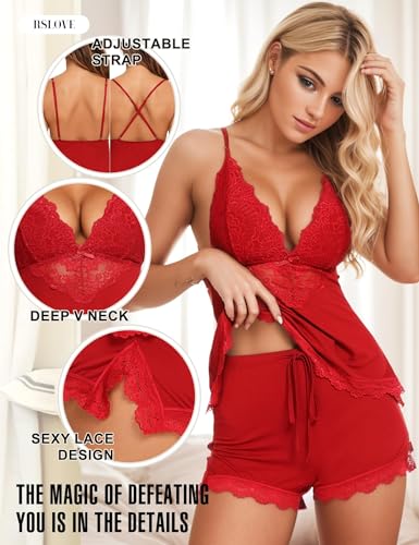 Specification: RSLOVE Ensemble Pyjama Sexy pour Femmes Camisole en Dentelle et Short V-Neck – Vêtements de Nuit en Modal Nightwear