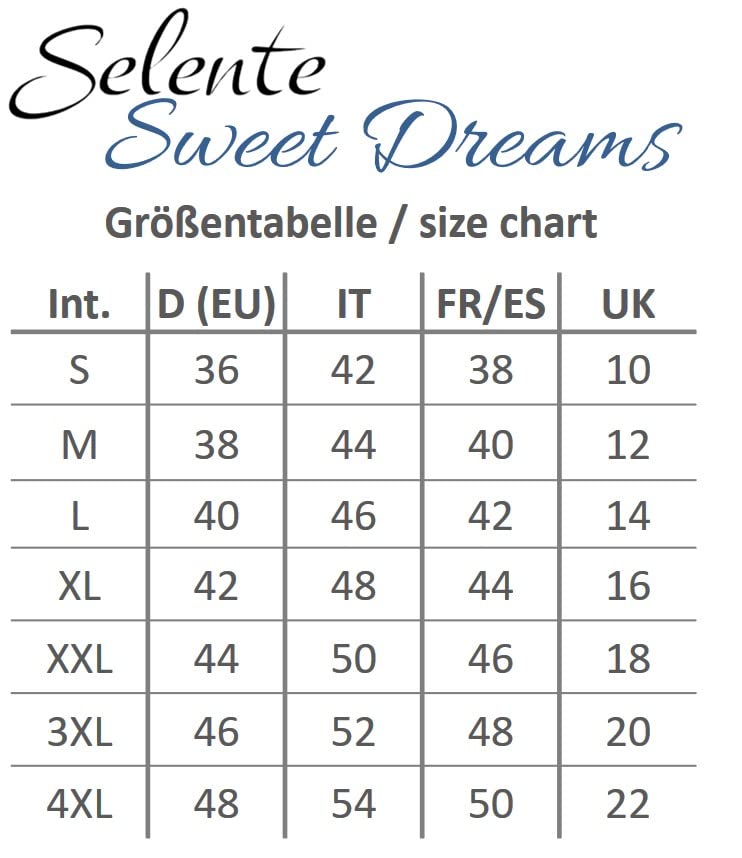 Be the first to review “Selente Sweet Dreams – Élégante Chemise de Nuit Courte/négligé pour Femme (Fabriqué dans l’UE) avec Une délicate décoration en Dentelle.”