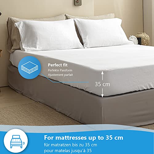 Simple&Opulence Drap Housse 100% Lin 2 Personnes – 182 × 200 cm,Blanc – Bonnets pour 35 cm
