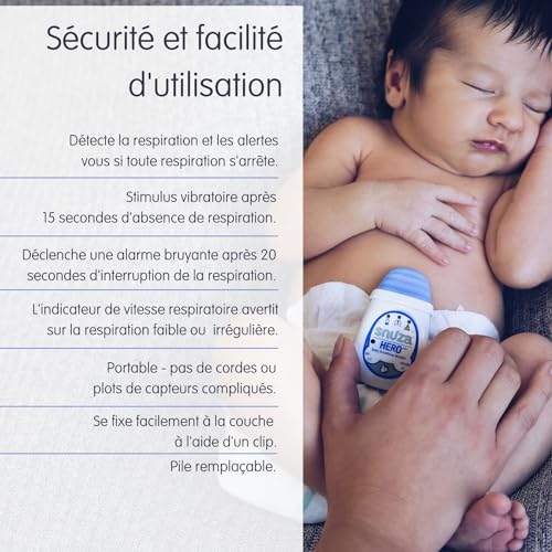 UNIQUE: Snuza Hero MD est le seul moniteur respiratoire dans bébé portable et conclu médicalement en Europe. Il est donc important que vous lisiez le vicissitude d’empressement dans une utilisation correcte dès que vous recevrez votre appareil.