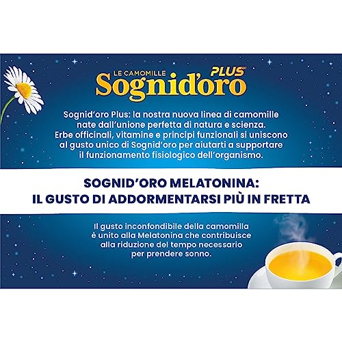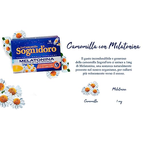 Specification: Sognioro Plus Camomille Soluble avec 1 mg de mélatonine sans sucre pour favoriser le sommeil – 6 paquets de 16 sachets