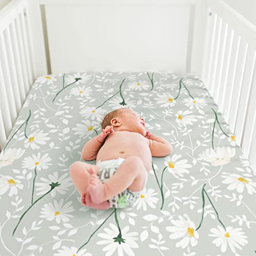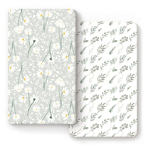 Specification: Stretchy Ultra Soft Jersey Knit Fitted Crib Sheets Set 2 Pack, Fit All Standard Crib Mattress Pads, Breathable Crib Sheet for Girls, Watercolor Daisy Flowers