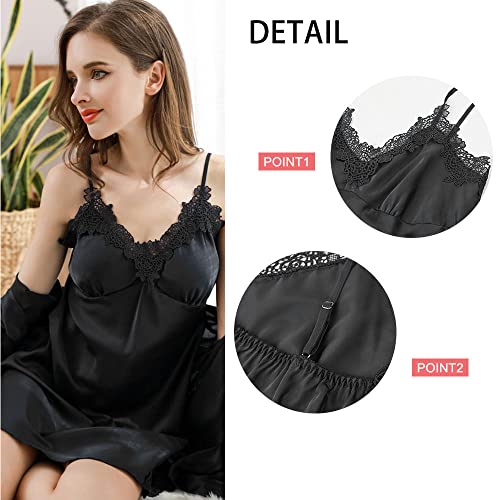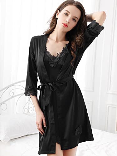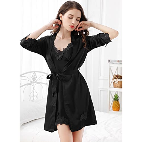 Superora Ensemble De Pyjama 5 Pièces Femme Robe de Nuit Peignoir Vêtements de Nuit Nightwear Chemise de Nuit Satin Dentelle