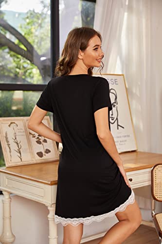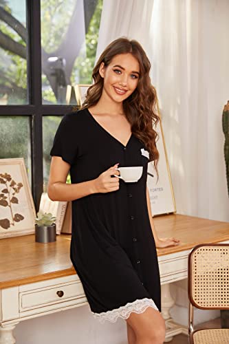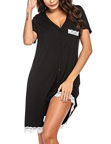 UNibelle Chemise de Nuit Femme Manches Courtes Robe de Nuit Bouton Ouvert Devant Vêtements de Nuit, S-XXL