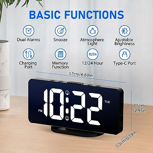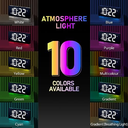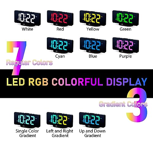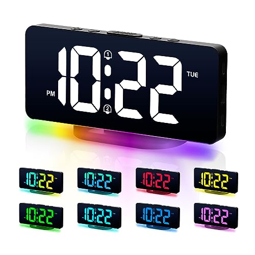 VINILITE Réveil Numérique Reveil Lumineux avec Veilleuse 10 Couleurs LED Horloge Digitale Luminosité Réglable, Fonction Snooze/ 2 Alarme/ 12/24H/ Port de Recharge USB (Noir)