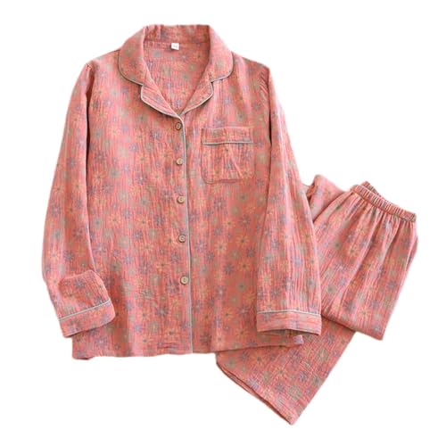 Specification: Women Cotton Print Sleepwear Set Spring Summer Long Sleeve Trousers Two-Piece Home Pajamas
