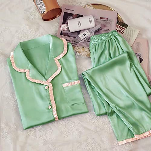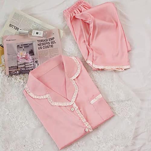 XKUN Pyjamas Pajama Ensembles Femmes Solide Soft Silk À Manches Longues Turn Collier Homewear Loisirs Loisirs Minces Dames Sleepwear Lounge Chic