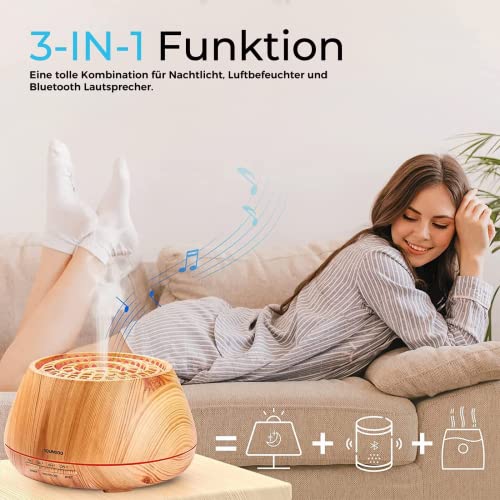 YOUNGDO Diffuseur Huiles Essentielles 400ML, Lumière de 30 Couleurs, Enceinte Bluetooth, Diffuseur d’Huiles Essentielles Electrique à Brume Fraîche, pour la Maison/Yoga/Spa/Bureau