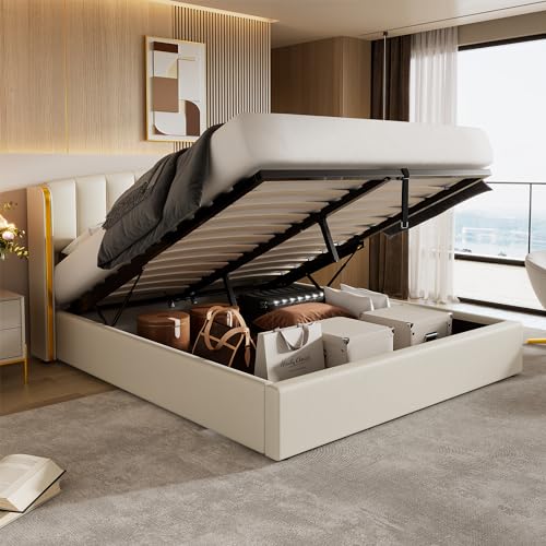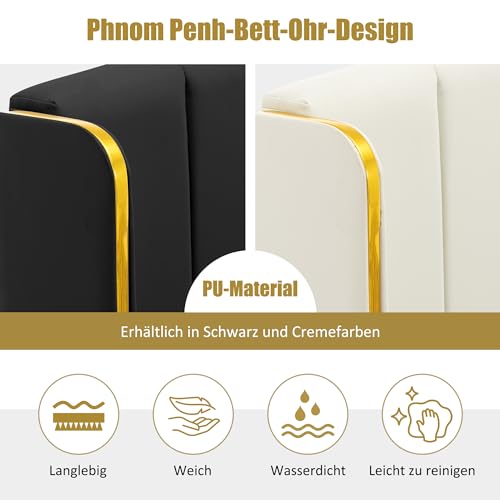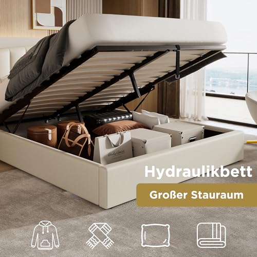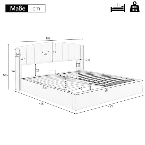 Specification: Zravenna Lit coffre de rangement, lit hydraulique, lit double, 180 x 200 cm, design oreilles à bords dorés, coffre de rangement en polyuréthane, avec sommier à lattes et tête de lit, cadre en métal,